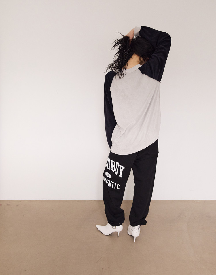 Raglan Contrasted Terry Long T-Shirt - NAVY-GREY