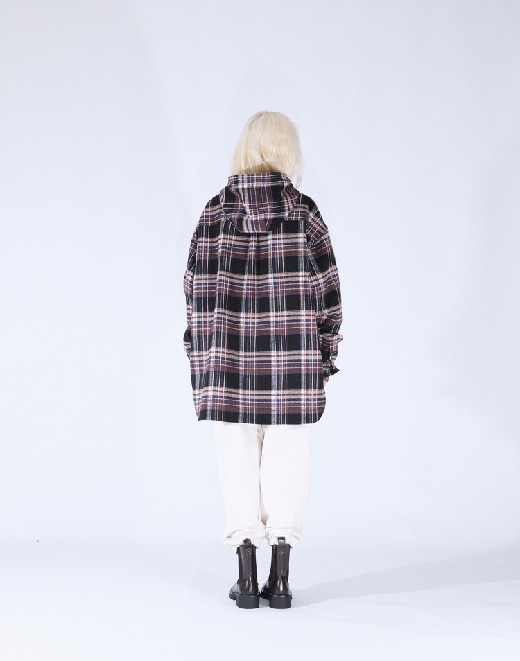 OVERSIZED FIT BUTTON HOODIE SHIRT WITH FRONT ONE POCKET.