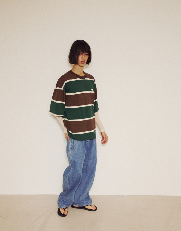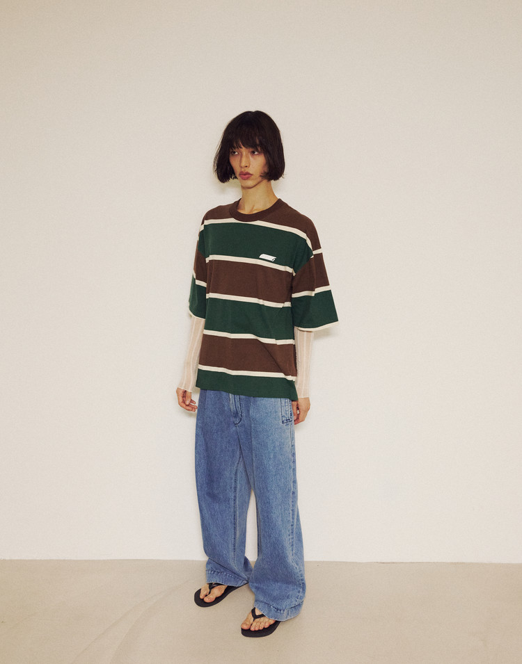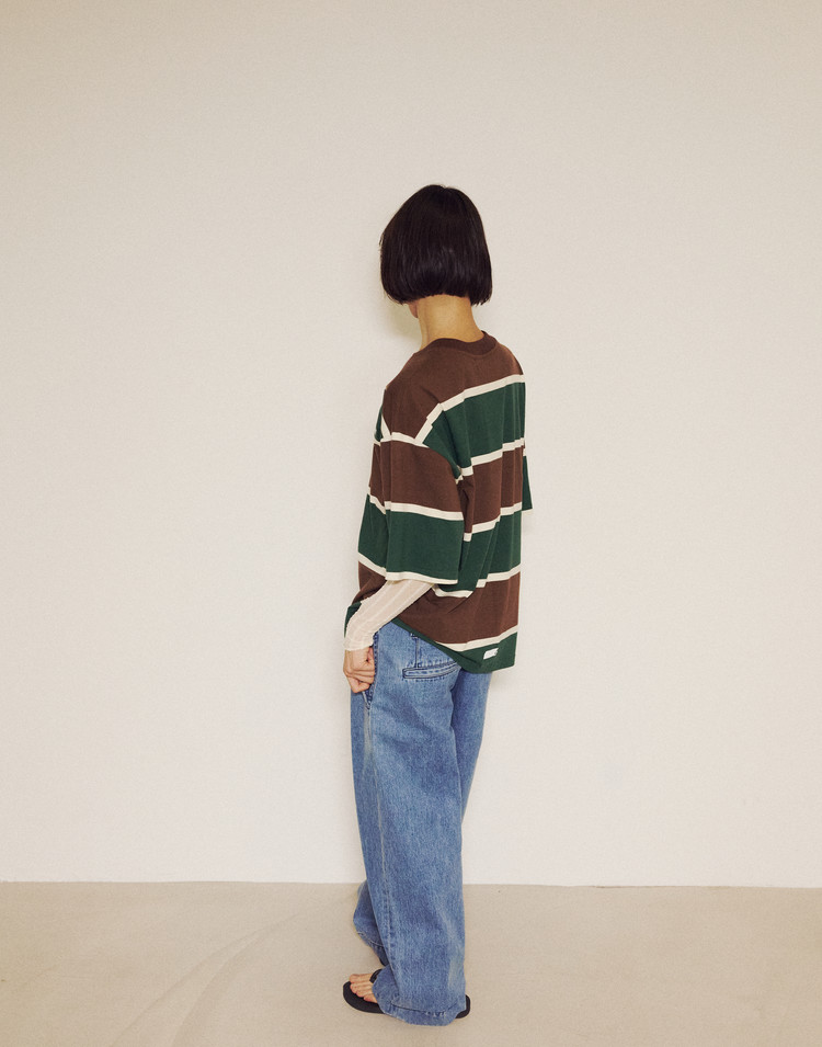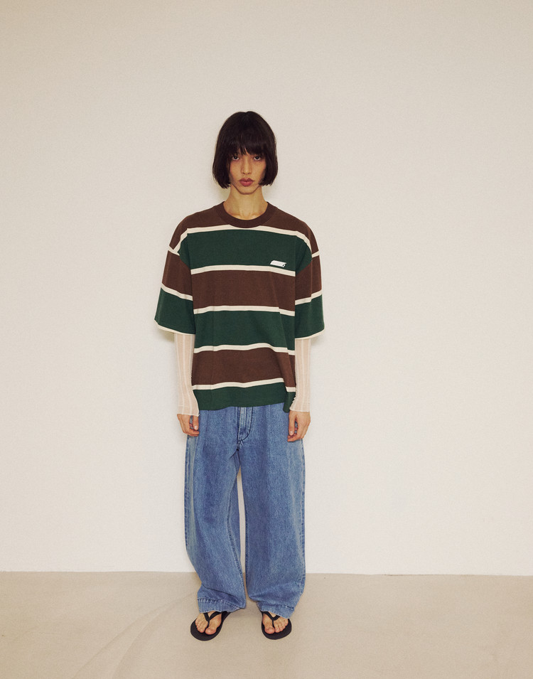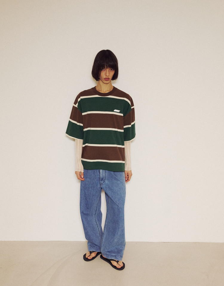 Big Stripe Logo T-Shirt - BROWN & GREEN