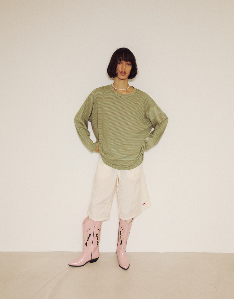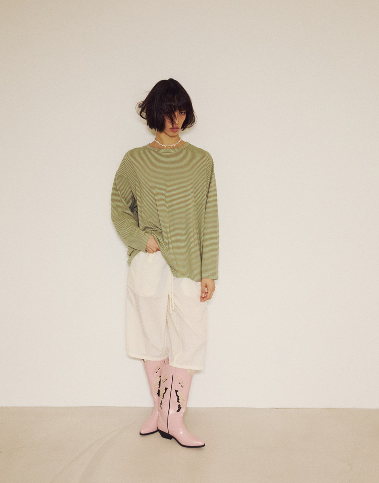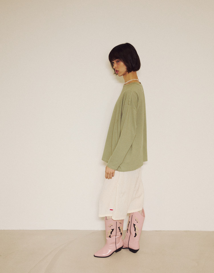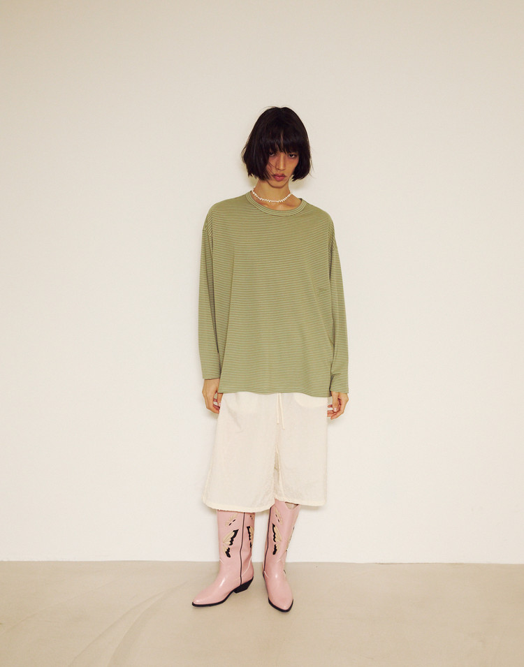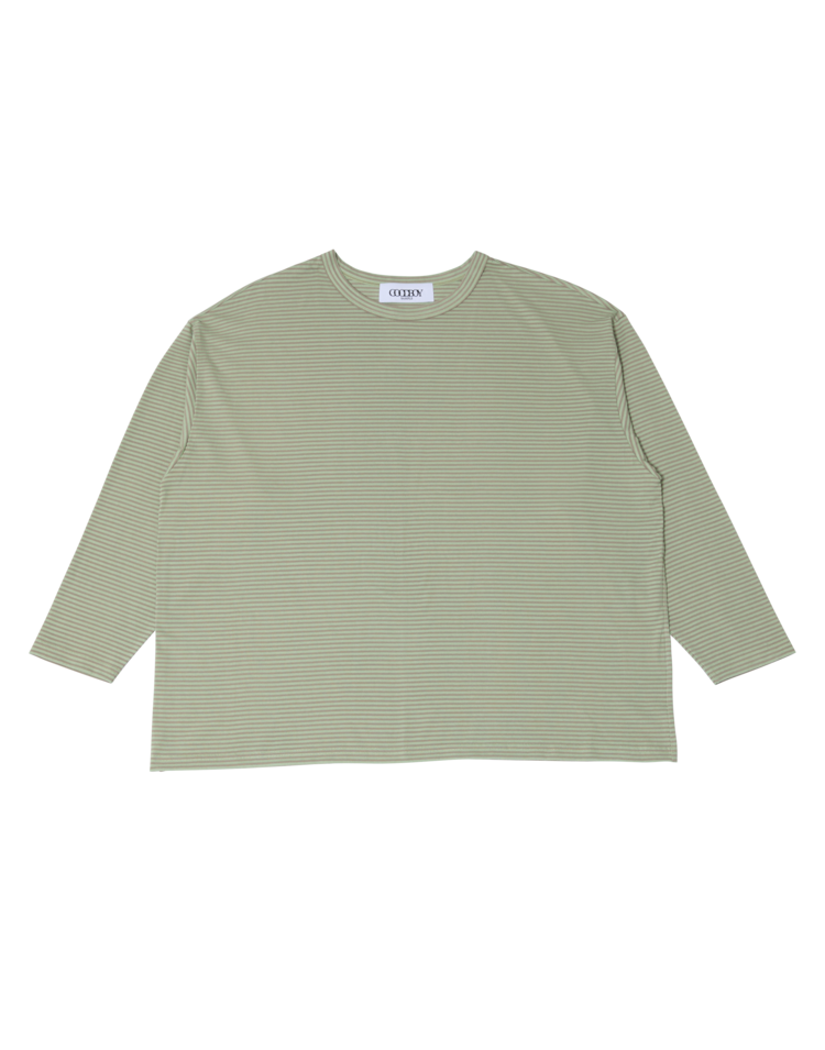 Stripe Binding Long Sleeve T-Shirt - DUST GREEN