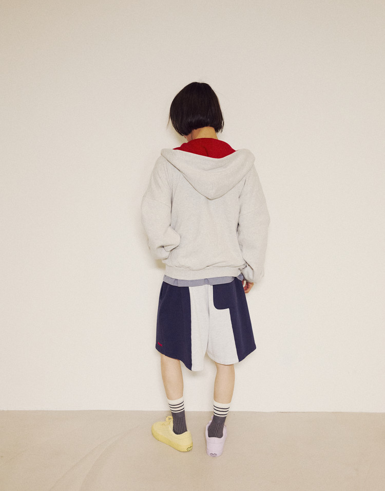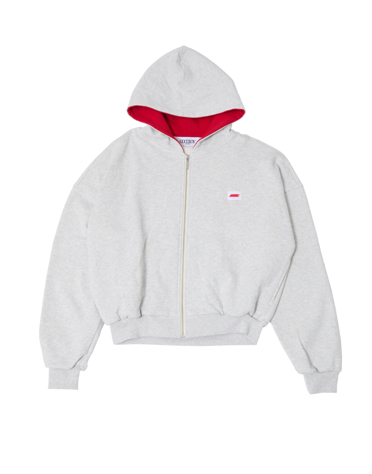 Color Block Zip-Up Hoodie - MELANGE GREY & RED